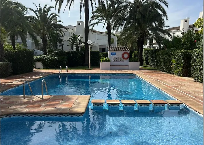 Die Villa am Strand Meerblick&Pool! Traumhaftes Reihenhaus am Strand Dénia zeichnet sich durch eine Lage, ungefähr 20 Gehminuten vom Strand (Platja Punta del Raset), aus und überblickt den Pool. Diese 2-Zimmer-Villa befindet sich im Bezirk Playa de Les Marines und bietet kostenlose Privatparkplätze vor Ort.